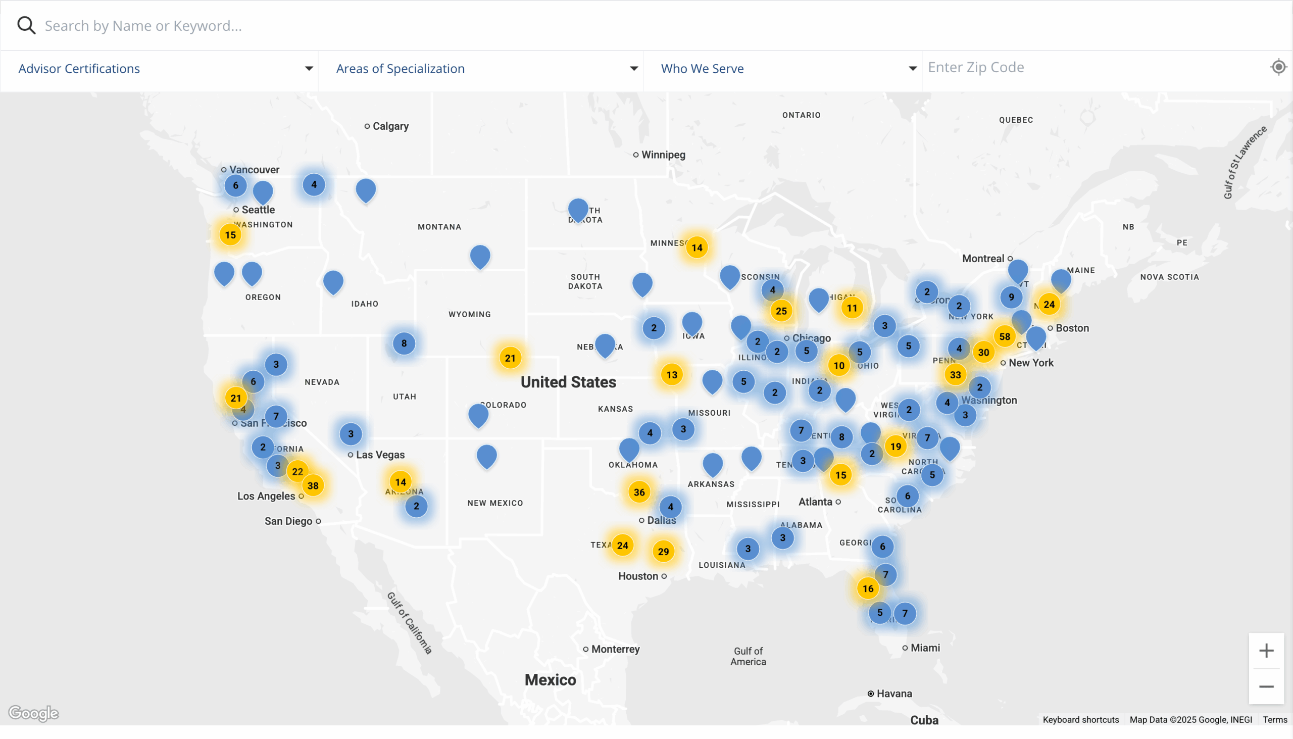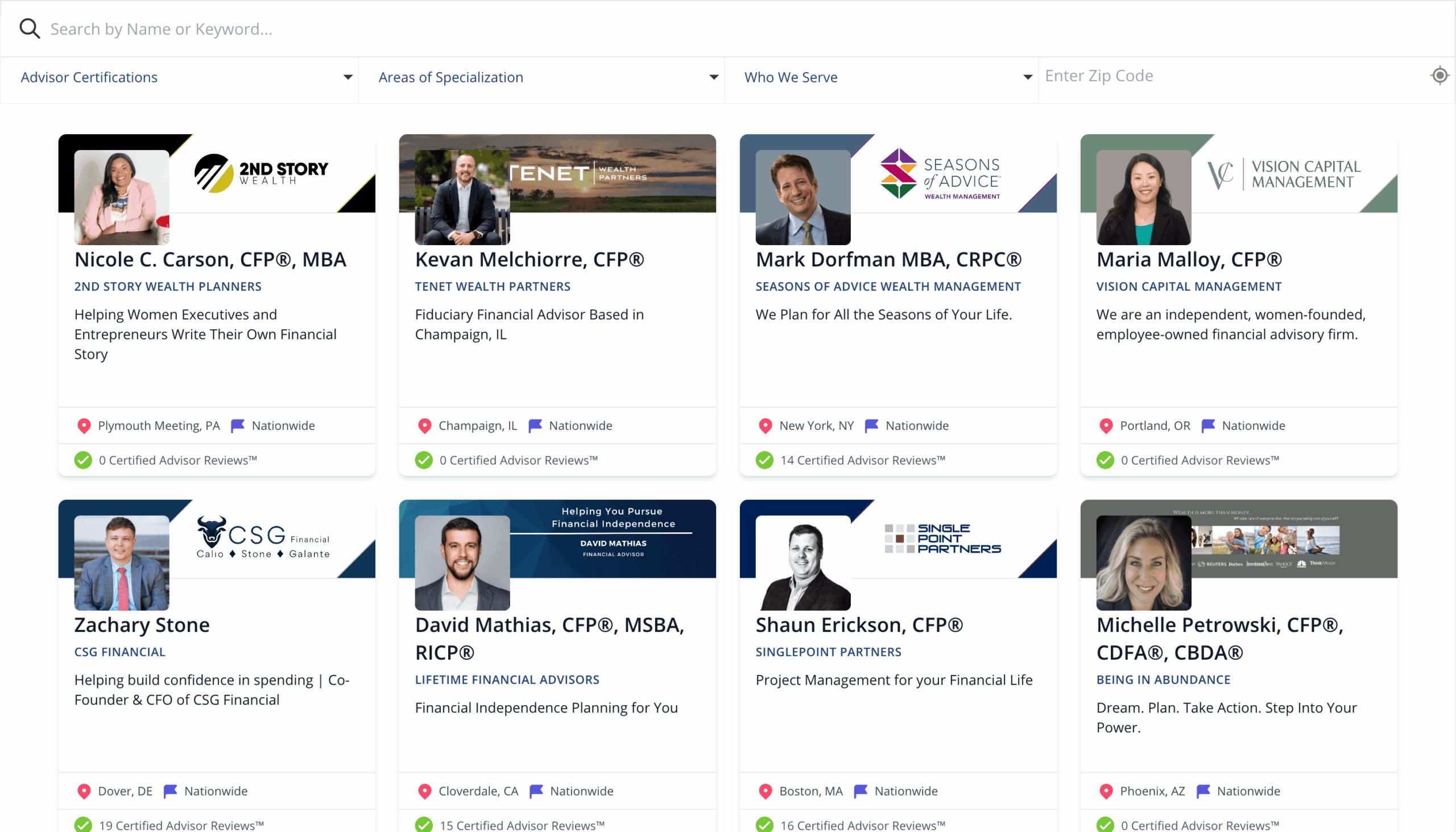 - A custom built directory for advisors that is incredibly optimized for search-ability.